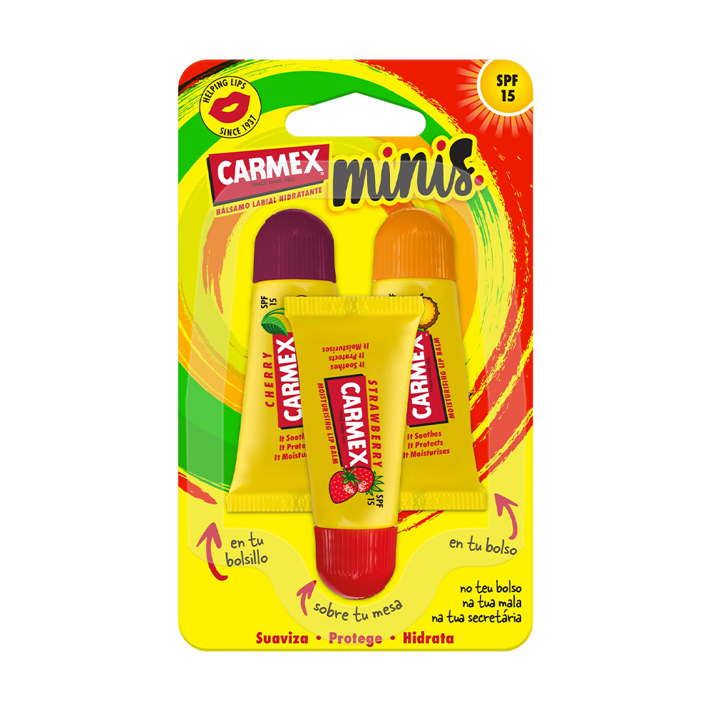 El formato más take-away de Carmex®. Delicioso sabor a fruta y máxima protección en una edición mini que puedes llevar siempre contigo. Porque la vida está llena de aventuras y tus labios se merecen el mejor cuidado en cada momento.