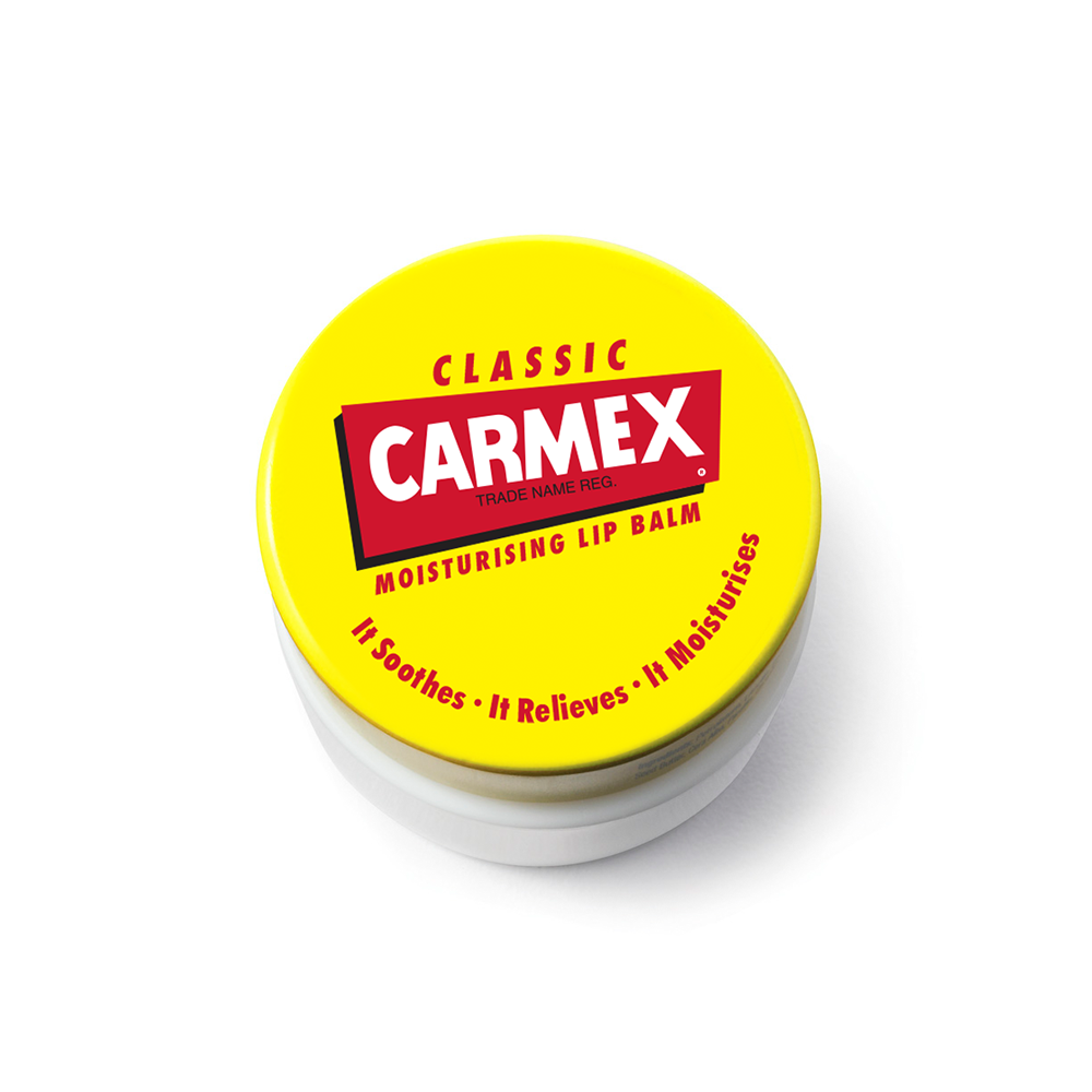 El tarro de Carmex® original. Refresca y suaviza tus labios con una fórmula única que no deja indiferente a nadie. Deslízate en un mundo de alcanfor y mentol donde tus labios estarán más protegidos que nunca. Ingredientes Vaselina, lanolina, parafina, manteca de cacao, cera alba, mentol, ácido salicílico.